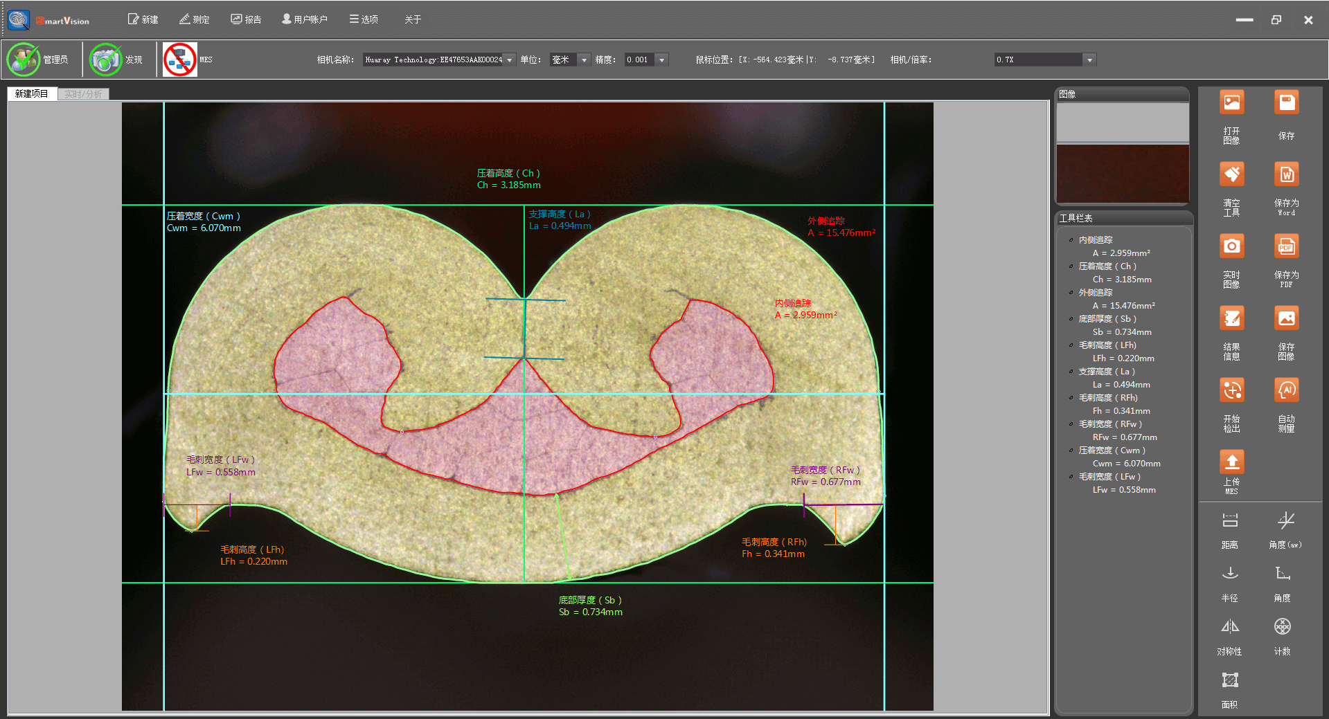 Software Analysis Module | Smart Vision Intelligent Software, fully automatic analysis of C/H, wall thickness, burrs, compression ratio, void ratio, etc. |