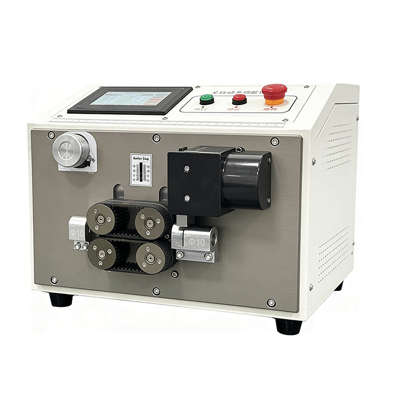 AC-315 full auto tube cutter with 4.3" touchscreen, 0.01mm cutting precision, 4-roller feeding, 14000 cuts/h, burr-free for PVC/silicone/automotive fuel lines.