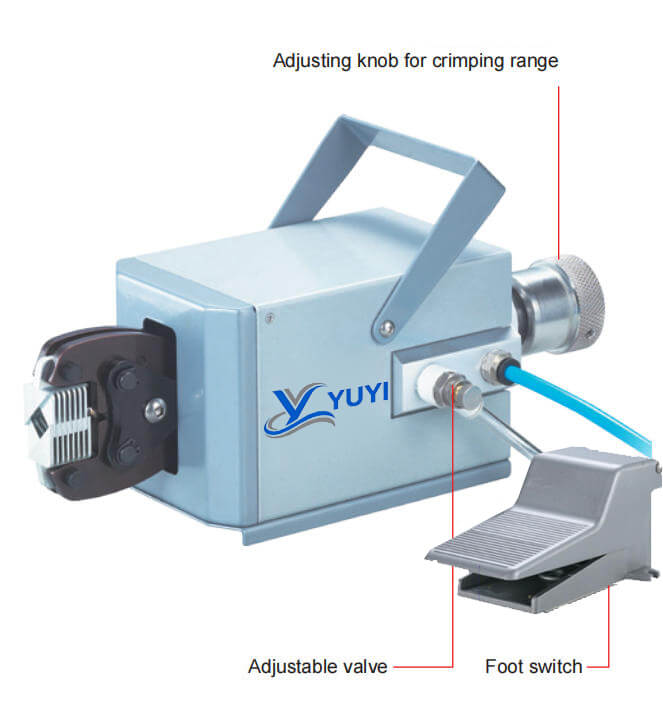 Front or Side Terminal InsertionFoot Pedal Control–Ideal for medium-volume terminal production.More Reliable, Stable, and Efficient than manual crimping tools.Portable and Lightweight design for easy operation and movement.